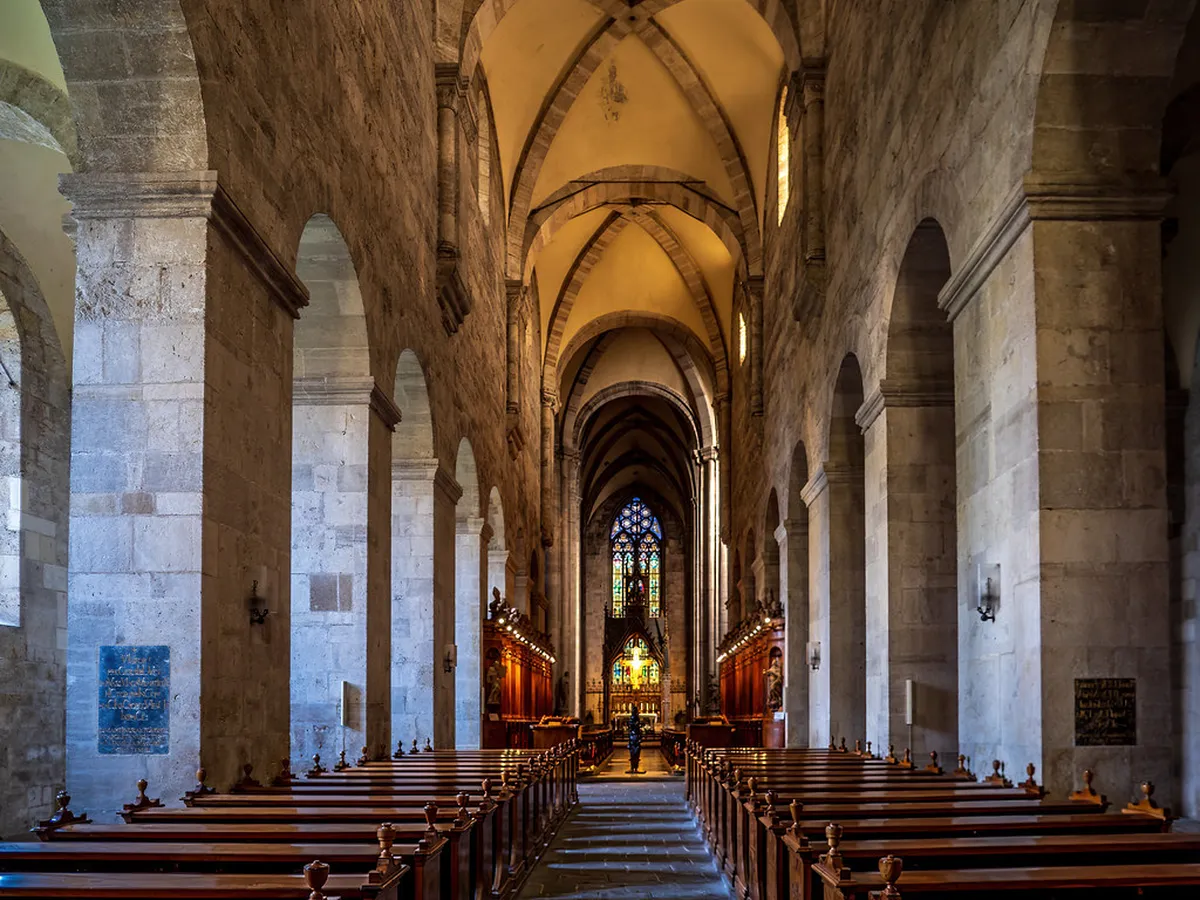The interior of the cathedral also reflects this mix of different historical periods and architectural styles. Roman columns stand near Gothic arches while a Romanesque cloister remains a peaceful place for quiet reflection. The Gothic portal serves as the grand entrance to this complex world of stone and history. It bridges the gap between the older Roman foundations and the later Renaissance additions.