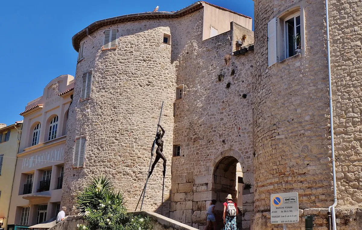 Check your Antibes ramparts walking map at this point. Ensure you are heading toward the Nomade sculpture. This giant statue sits on a high bastion. It looks out over the Mediterranean Sea.