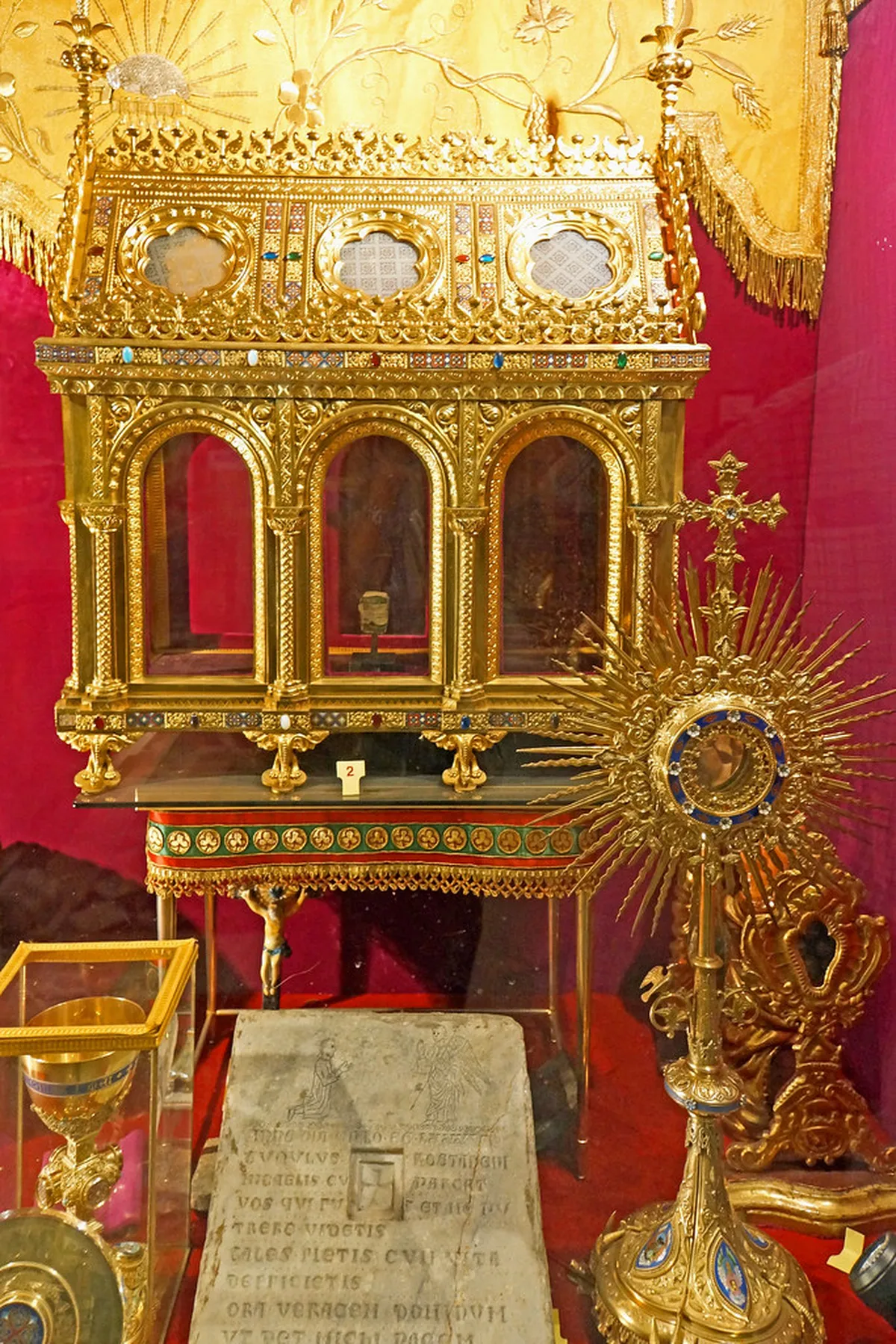 The path leading to the church is lined with massive stone sarcophagi from the Roman and medieval periods. This walkway creates a solemn and historic atmosphere before you even reach the main church doors. Wear comfortable walking shoes because the ground can be uneven and made of loose gravel or stone. The walk is flat but requires some care to navigate the historic burial pathways.