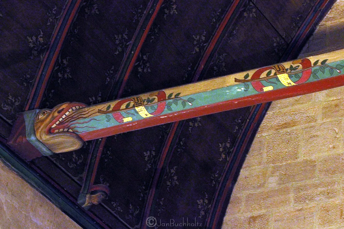 Brightly painted decorations cover the horizontal tie beams that stretch across the wide vaulted room in the hall. These paintings include heraldic shields and colorful geometric patterns that catch the eye of every visiting traveler. The colors have been carefully restored to match the original appearance of the hall in the year 1443. Seeing these vivid designs provides a unique glimpse into the aesthetic preferences of the late medieval era.