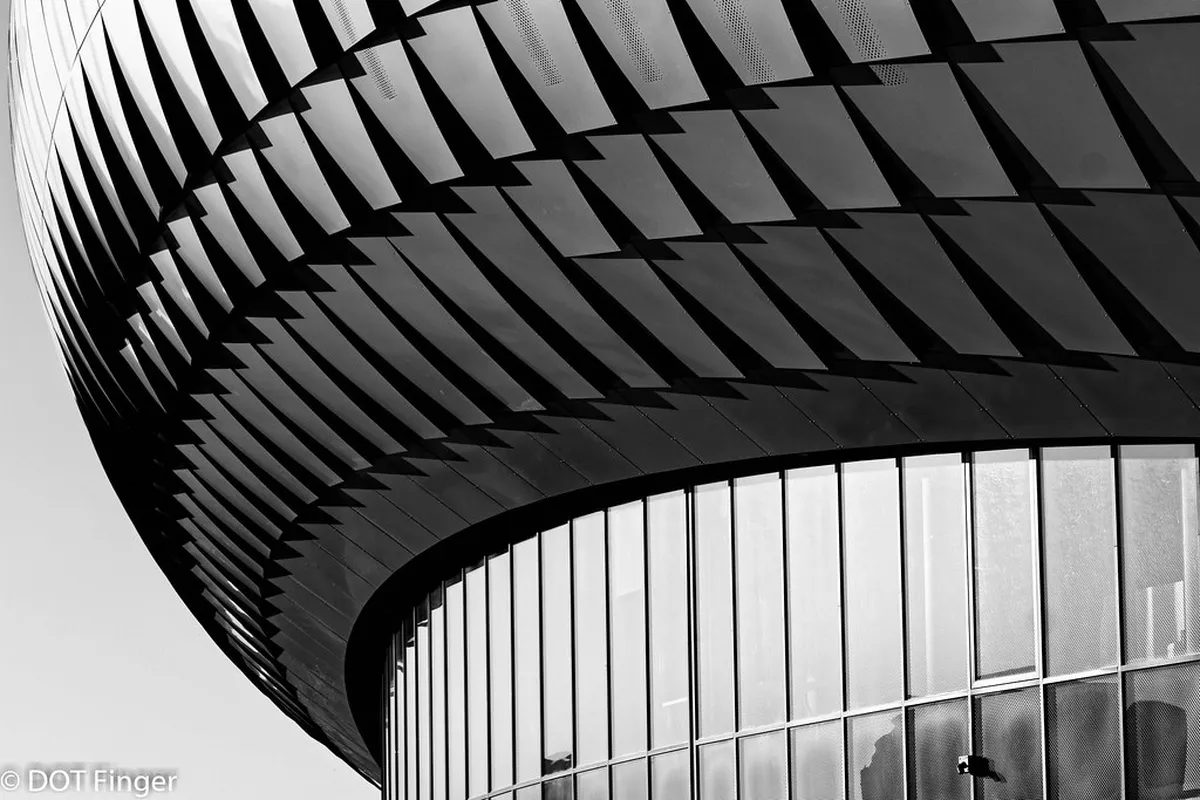 The exterior facade features nearly 2,500 individual panels made from silk-screened glass and perforated aluminum materials. These materials were chosen specifically to catch and reflect the natural light from the sky and the river. You will see different colors on the building depending on the time of day and the weather. The surface often glows with gold and silver hues that remind viewers of white wine and sun.