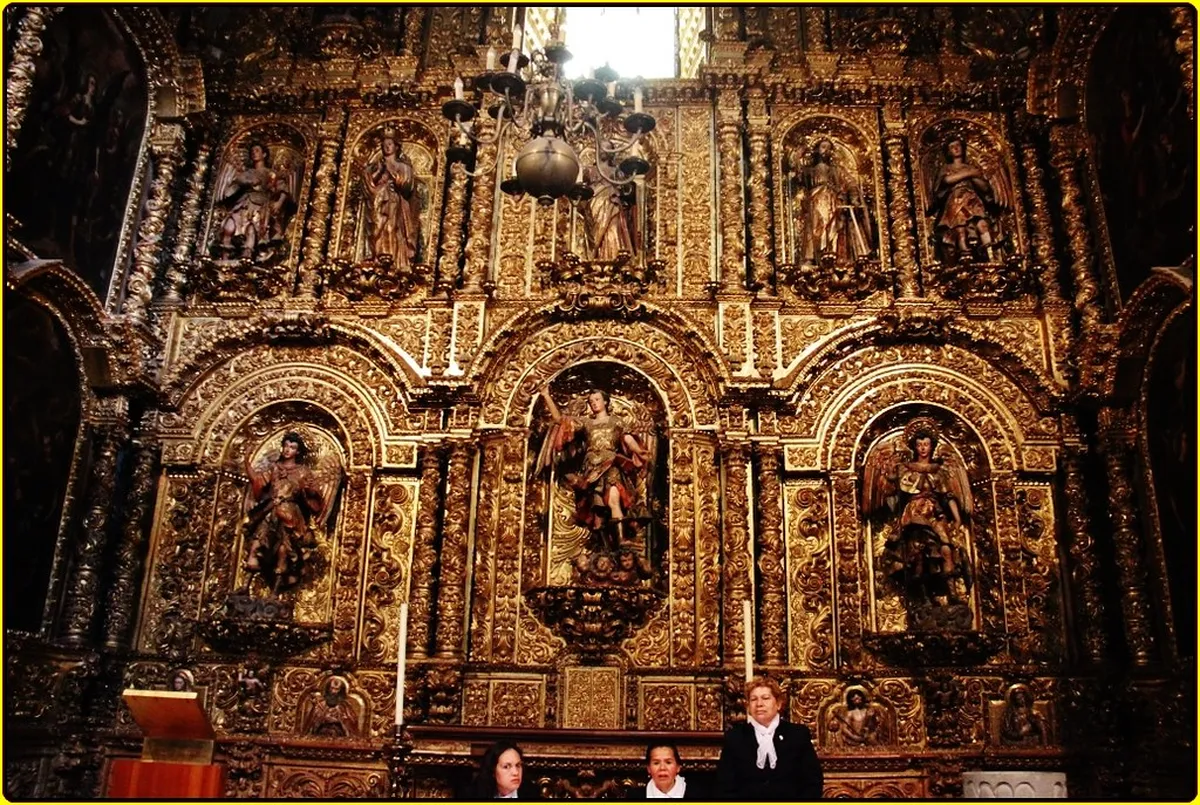 Mosaics of saints are placed in niches around the upper sections of walls. St. Michael, the namesake of the church, is depicted in a central position. These icons serve as a visual invitation to those passing by on the street. They are made from thousands of tiny colored glass tiles.