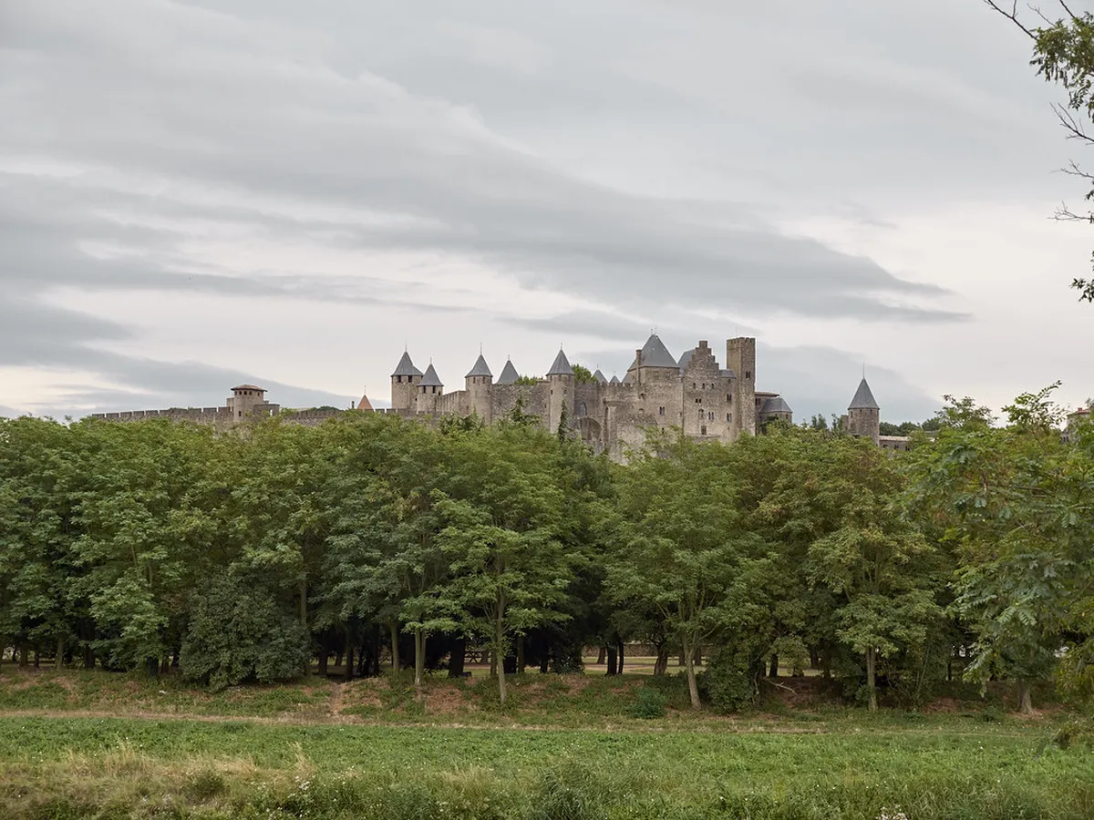 The castle is located inside the upper walled city of Carcassonne. You must enter the Cité through the main Narbonnaise gate first. Follow the signs toward the center of the historic district. You will find the Chateau Comtal archaeological crypt architecture near the main entrance.