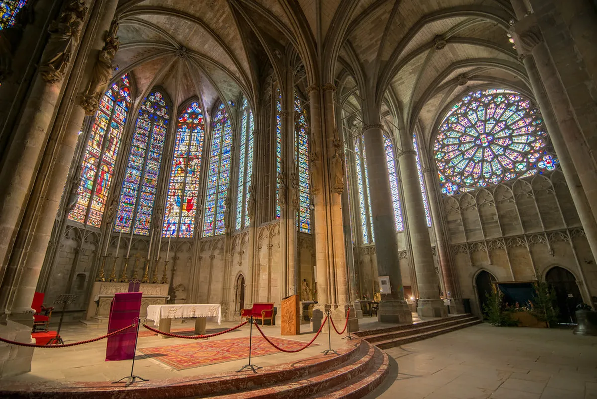 Large circular windows dominate the transept walls here. They represent the peak of Gothic engineering and light. You should read about Saint-Nazaire stained glass architecture for details. The blue and red tones are especially famous.