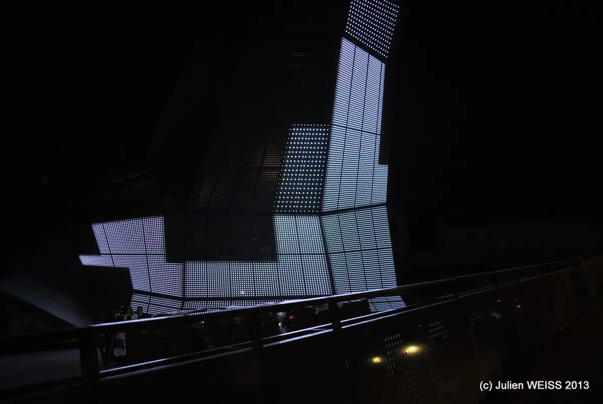 Seating areas are scattered throughout the open-air plaza for visitors to rest and relax. You can admire the sharp contrast between the 19th-century stone and the modern glass. The layout encourages visitors to walk slowly around the entire perimeter of the site. This path provides excellent views of the glowing LED facade during the late evening hours.