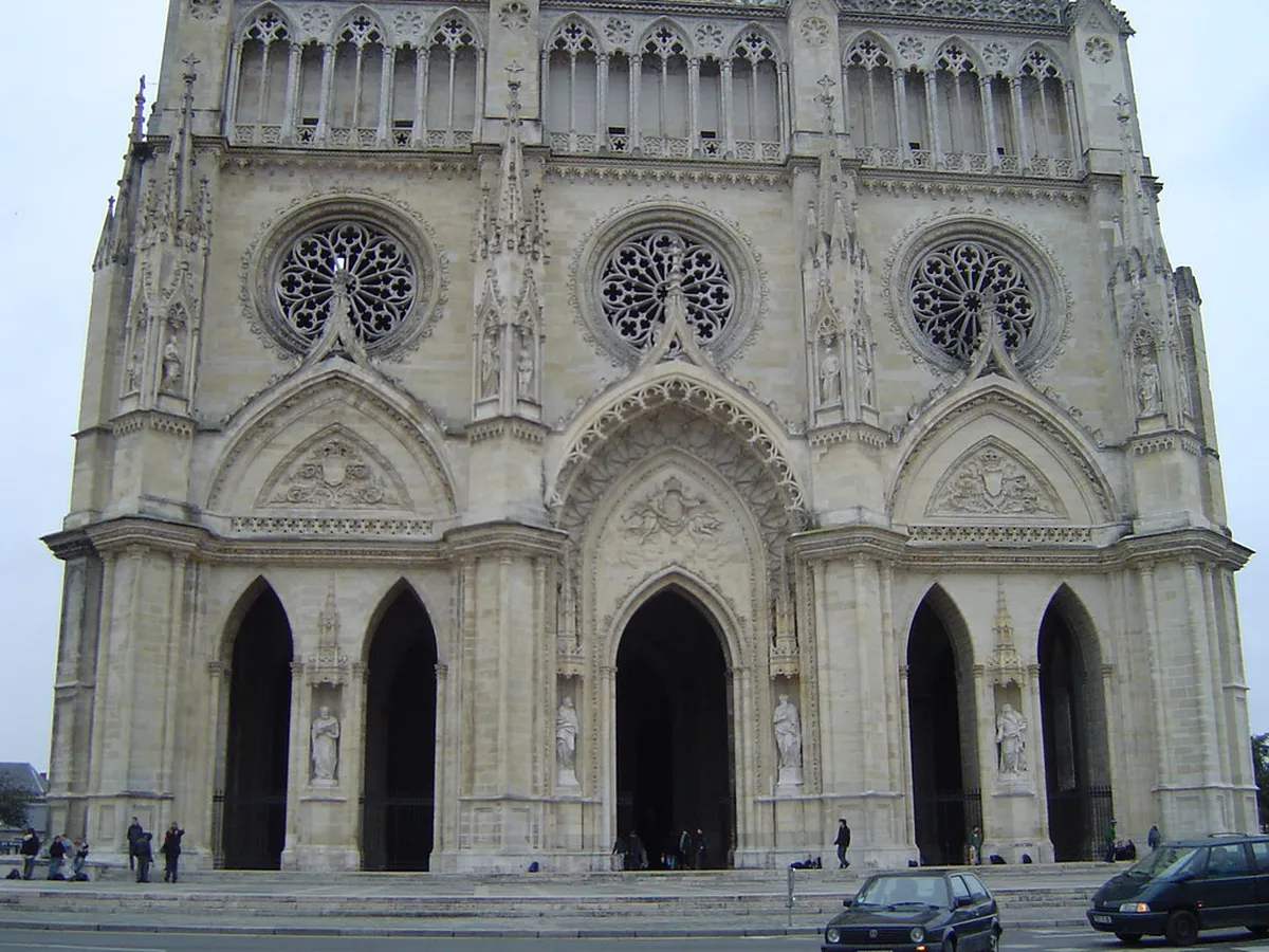 The exterior of the cathedral is just as impressive as the interior. You can see the intricate stone carvings on the central portals. These sculptures depict biblical scenes and historical figures from France. The detail remains sharp despite the age of the stone.